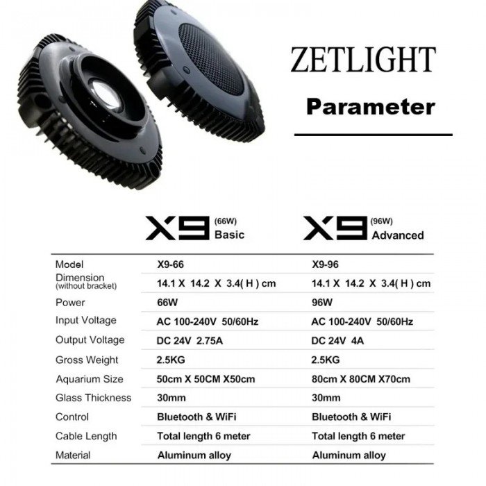 ZETLIGHT X9 66W 96W Full Spectrum WiFi Bluetooth App Control Marine Aquarium LED Light for Saltwater Coral Reef Fish Tank