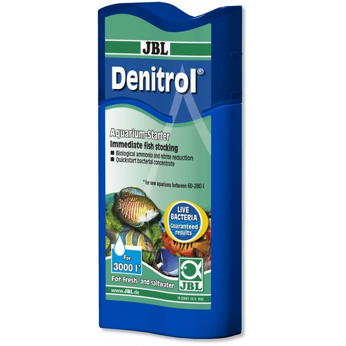 For aquarium water to suit both fish and plants: when setting up a new aquarium, water changes and after fish diseases for freshwater and saltwater aquariums, turtle and shrimp tanks - Shake the bottle well, measure the right amount in the dosing lid and evenly distribute in the aquarium - Live bacteria with enzymes for the rapid breakdown of pollutants - Healthy water, healthy fish: breakdown of fish excrement and other waste by means of special enzymes and cleansing bacteria - Contents: 1 bottle Denitrol. Use: 10 ml for 20 l water during initial setup and disease, 10 ml for 300 l water during water change
