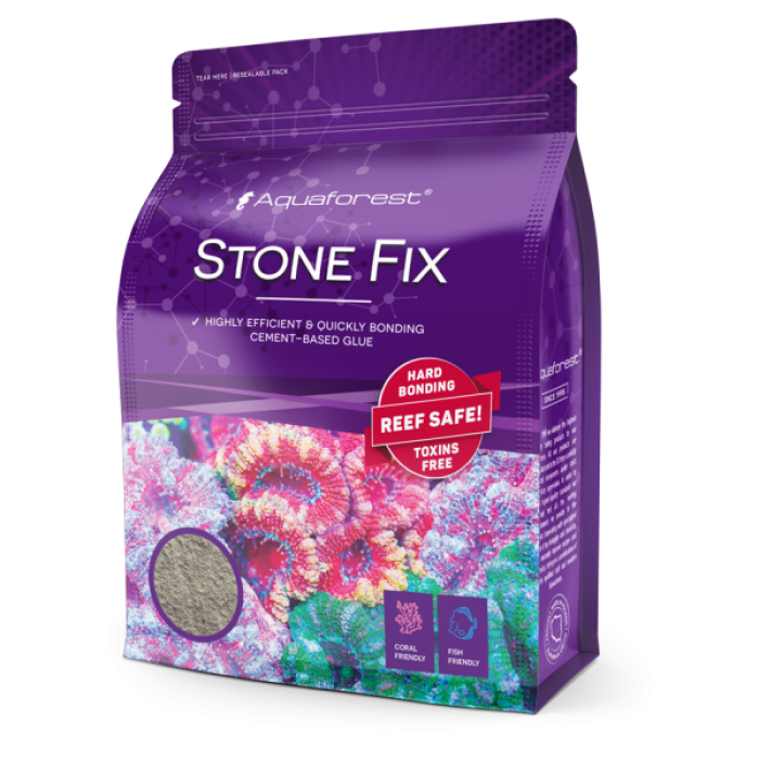 Quickly bonding, cement-based glue designed for connecting large elements of live or ceramic rock. It does not contain toxic compounds, which makes it perfectly safe for fish and invertebrates. How to use: mix small amount of glue with water until consistency gets homogeneous. Immediately start sticking the elements. Stone Fix is recommended to be used outside the tank. In case of necessity of using underwater, all circulatory and shunt pumps should be switched off. After linking individual pieces leave for bonding for 15 minutes. Temporary haziness of the water is not harmful. Because of possible pH level raise, in tanks with livestock we recommend not to glue more than 2-3 pieces a day. Contains: portland cement. Store in a cool, dry place in its original packaging for a period 12mc from the production date shown on the label.