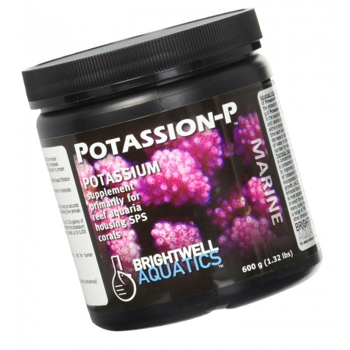 In natural seawater, potassium is a non-conservative major element with a concentration slightly lower than that of calcium (~399 ppm vs. ~413 ppm, respectively). It is a component of aragonite, and regular dosing has, within the past several years, been implicated in improving the blue coloration of numerous varieties of small-polyp stony corals; the benefits of potassium supplementation are potentially two-fold, then: provision of an element that is 1.) incorporated into the skeletal material of corals and other reef-buidling organisms for purposes of growth, and 2.) incorporated into pigments that (presumably in the presence of adequate ionic iron) enhance blue coloration of small-polyp stony corals. The importance of potassium to marine organisms is most apparent when beginning to dose it in aquaria with depleted potassium concentrations and/or in which the sea salt mixture used is potassium-deficient; in such cases, changes in the appearance of many corals may be observed within the first weeks of regular dosing. Maintaining potassium within a range of 390 - 410 ppm is sufficient for long-term health, growth, and coloration of corals when all other physical and chemical requirements are met. It is recommended that the potassium concentration in the aquarium be determined by using an accurate test kit prior to supplementing. Do not add this product directly to an aquarium containing live animals without first diluting in water as directed.