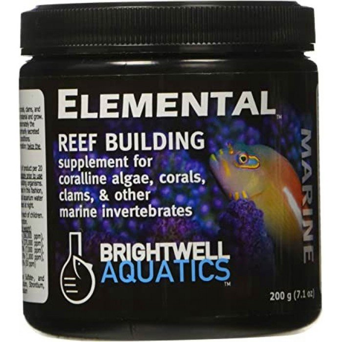 Brightwell Aquatics Elemental has twice the calcium relative to carbonates as compared to natural aragonite, making it a very powerful calcium source. The active components of Elemental are provided by a combination of sources and include natural aragonite, increasing the solubility of the solution and the effectiveness of the method. Silicate- and phosphate-free. The advantage to this method of supplementation is that one product may be used to establish and maintain water parameters conducive to reef formation. Note that target ion-specific supplementation may be called for in some aquaria, depending upon stocking density of reef-building organisms and environmental conditions within the system. Additionally, hobbyists may choose to use Elemental in conjunction with other methods of calcium, strontium, magnesium, and carbonate supplementation as a means of diversifying their dosing routine.