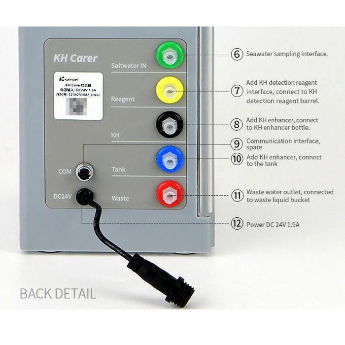 The Kamoer KH Carer is an automatic testing device measuring KH values (Alkalinity) in an aquarium. It includes manual and automatic detection functio..